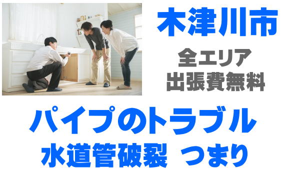 木津川市でパイプの修理を行っています。水漏れ、つまり、水道管破裂、凍結、漏水などのお困りごとはご相談ください。