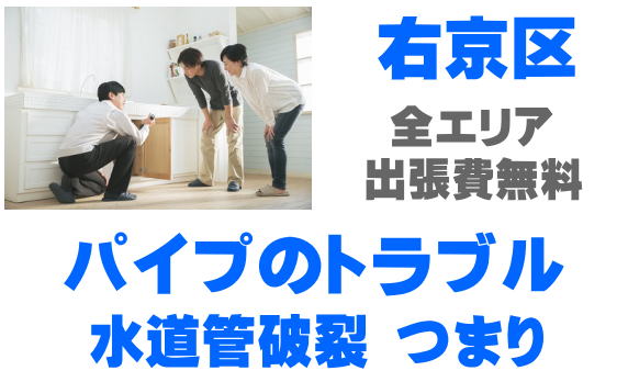 右京区でパイプの修理を行っています。水漏れ、つまり、水道管破裂、凍結、漏水などのお困りごとはご相談ください。