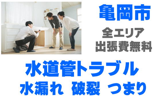 亀岡市で水道管の水漏れ、パイプつまり、破裂、凍結、漏水などのトラブルはお任せください。